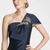 A sleek sleeve of crinkle georgette is cut on the bias with an asymmetric seam at the waist, creating a column for curves. At the shoulder sits a hand-tucked, stitched-on collapsed bow. We design all of our Essential Social dresses with the intention that they can be enjoyed again and again. After all, a beautiful dress should be worn often and well. Details: Model is 5’9″ wearing size 2 Plus-Sized Model is 5’10” wearing size 16W Full-Length, 60″ from top of shoulder to bottom hem Side Zipper Crinkle Georgette 100% Polyester Imported Style #S221B06-301