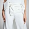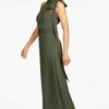A sleek, crinkle-georgette-style gown with a bias cut waist and asymmetrical seams. The shoulder features a hand-tucked, stitched-on bow, designed to accentuate curves. Made with 100% polyester and available in the Deep Cobalt color.